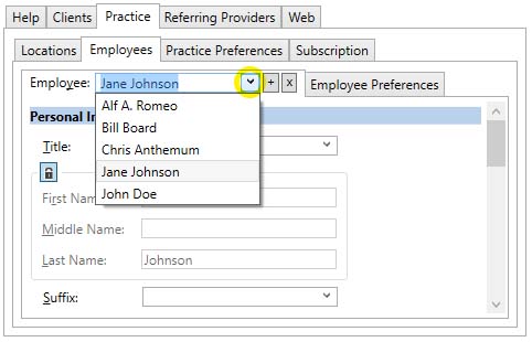 - In the the Employee Tab, next to the Employee : label,